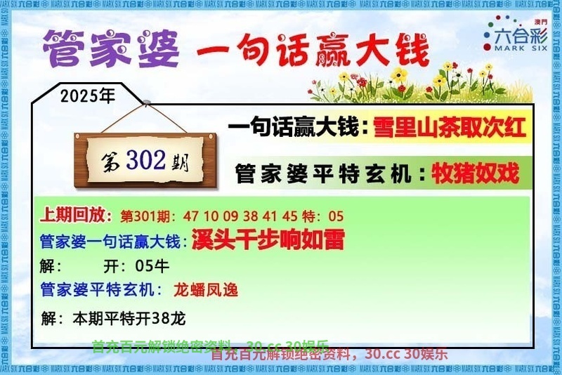 | 302期:五码 | 30.18.21.33.12 | 开:發00中 |